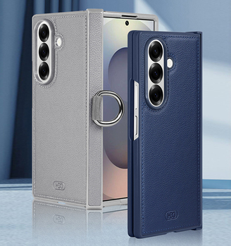 Защитный чехол для телефона Samsung Galaxy Z Fold 7 с металлическим кольцом и держателем из искусственной кожи